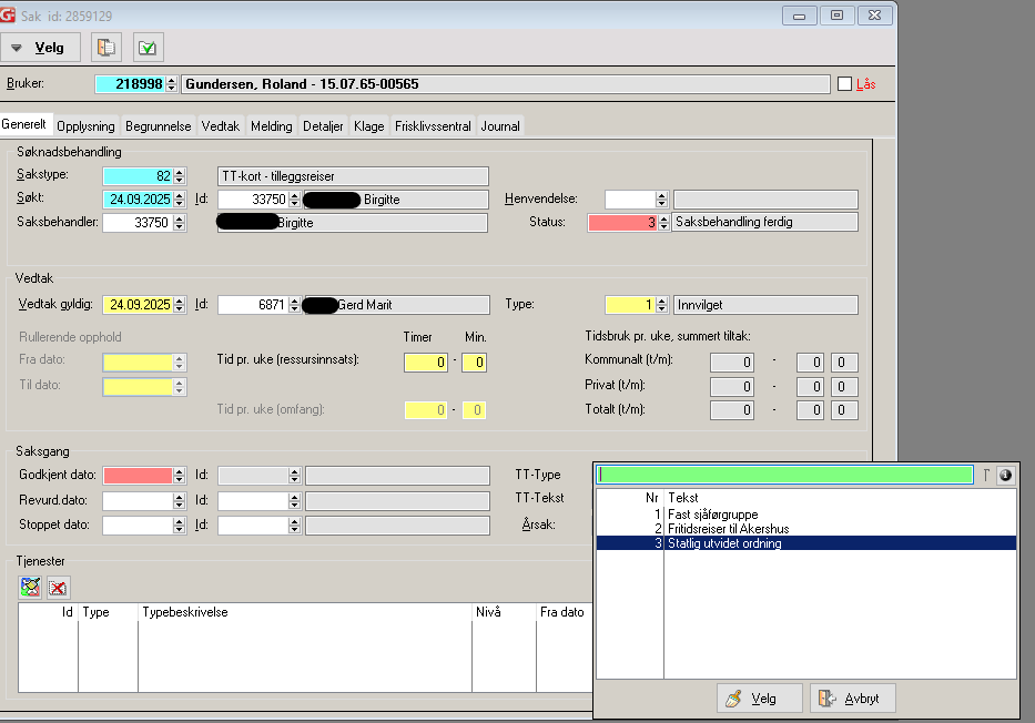 Opprett sak / tjeneste 82: TT-kort -tilleggsreiser
