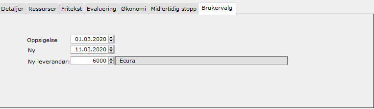 Melding om bytte av leverandør registreres av bydelen i Saksbehandlerjournal. På brukerens aktive tjeneste, på fanen Brukervalg, registrer følgende: