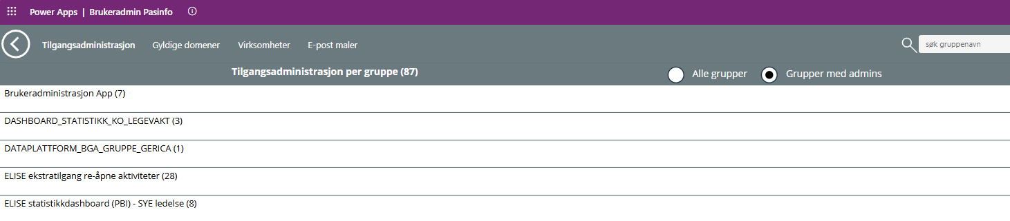 Dersom det er tilganger og/eller ansatte du ikke finner, klikk på Grupper
