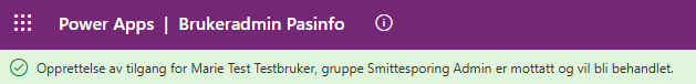 Når du har endret eller slettet en tilgang, vil du få en bekreftelse i grønt øverst på siden: