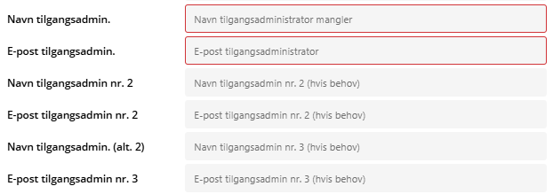 For å endre eller legge til en tilgangsadministrator, skriv inn navn og e-postadresse i de feltene for tilgangsadministrator. Kun én tilgangsadministrator er obligatorisk, men det er mulig å legge til opptil tre personer ved behov. Dette kan være lurt for eksempel i forkant av høytider og ferie. Trykk deretter Lagre endringer.