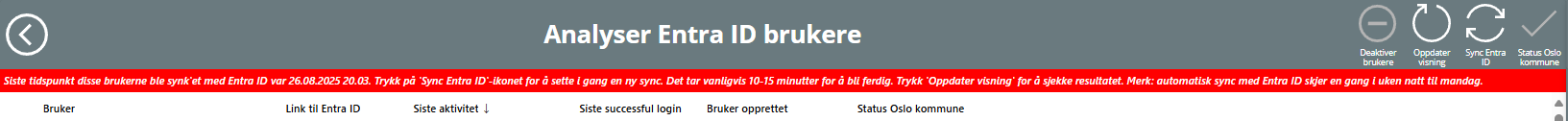 NB: Vær varsom med bruken av "Sync Entra ID" som krever noe ressurser. Ta kontakt med utvikler/forvalter for hjelp med analysemodulen.