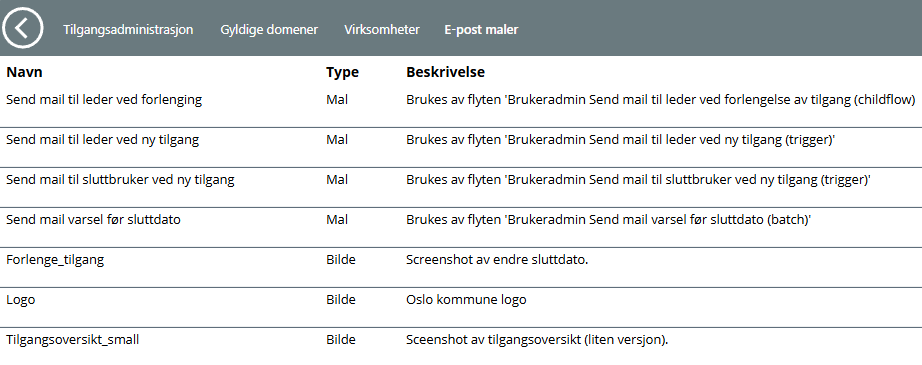Her redigeres malene for automatiske e-poster som sendes ut fra løsningen, dette er stamdata som vedlikeholdes direkte i produksjon. Det er kun utvikler og forvalter i Pasinfo med kjennskap til løsningen som skal endre disse. Ved spørsmål eller innspill til innholdet i malene, ta kontakt med utvikler/forvalter ved å sende en e-post til support@pasinfo.no.