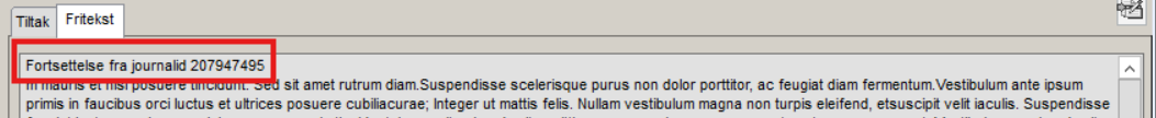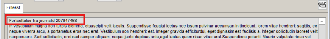 Dersom teksten er for lang til å lagres i èn journal i Gerica, deles den opp over flere journaler. Journal to, tre etc vil inneholde referanse til de andre journalene som hører sammen.