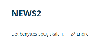 SpO2-skala må registreres på innbygger i Gerica før man kan gjøre NEWS-registreringen i ELISE. Standard registrering i Gerica er skala 1, slik at tjenesten må gjøre endring i Gerica for innbyggere der skala 2 skal benyttes.