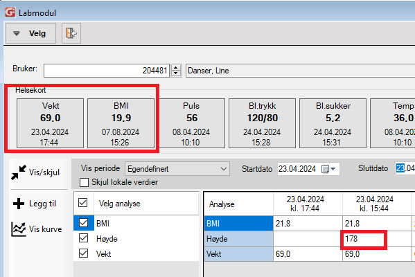 NEWS registrert i ELISE blir overført til Gerica NEWS-modul og de enkelte målingene blir tilgjengelig i Gerica labmodul.