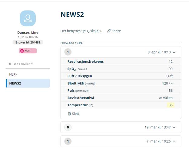Dersom NEWS blir re-åpnet i ELISE, verdier blir korrigert og NEWS fullført på nytt, blir NEWS automatisk korrigert i Gerica.